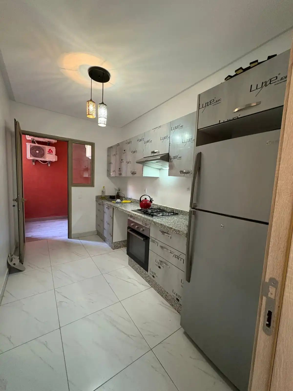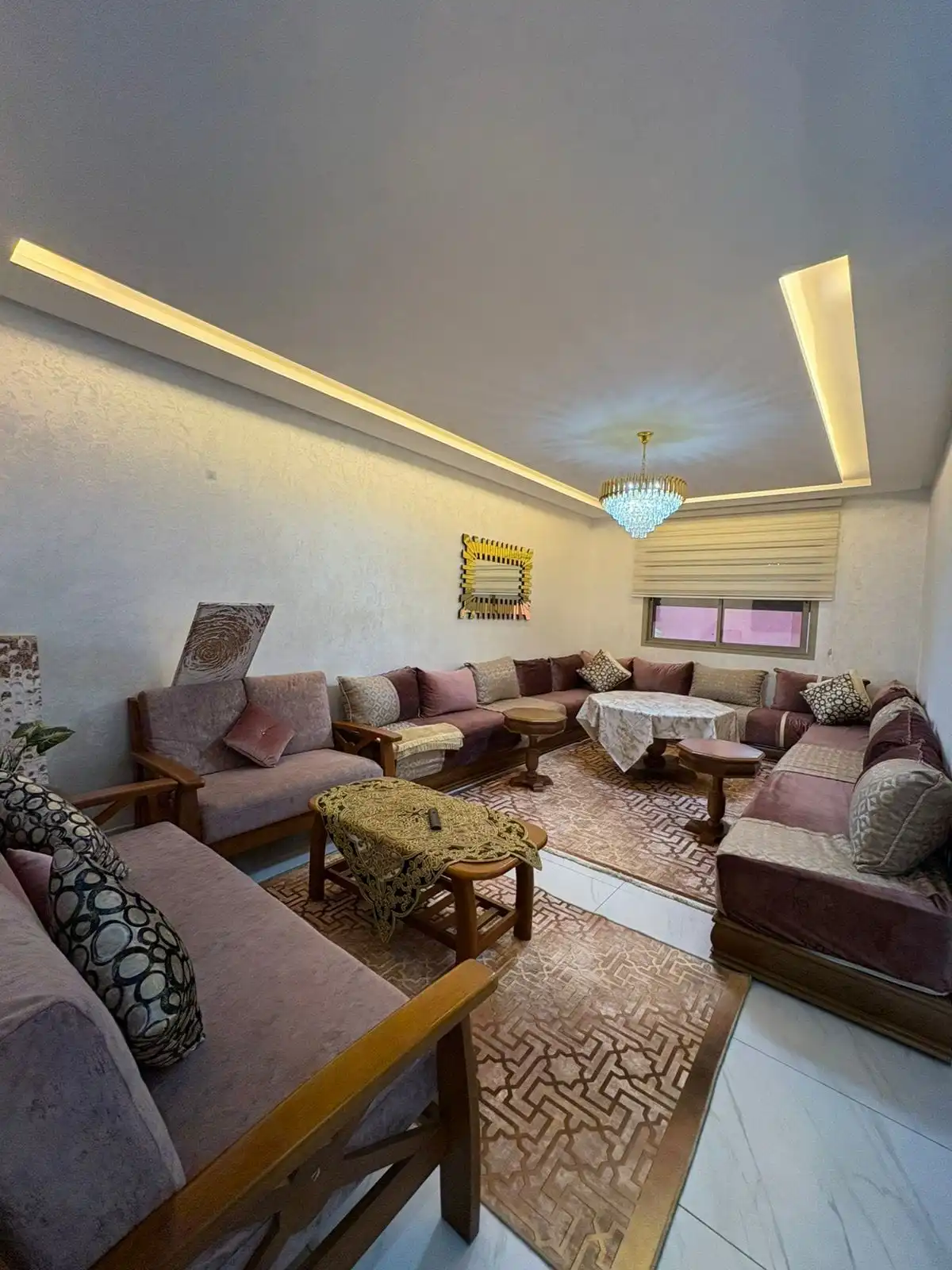 Profitez du confort et de la tranquillité de cet appartement meublé moderne, situé dans une résidence sécurisée avec piscine, à Jnane Awrad, un quartier calme et agréable à vivre.