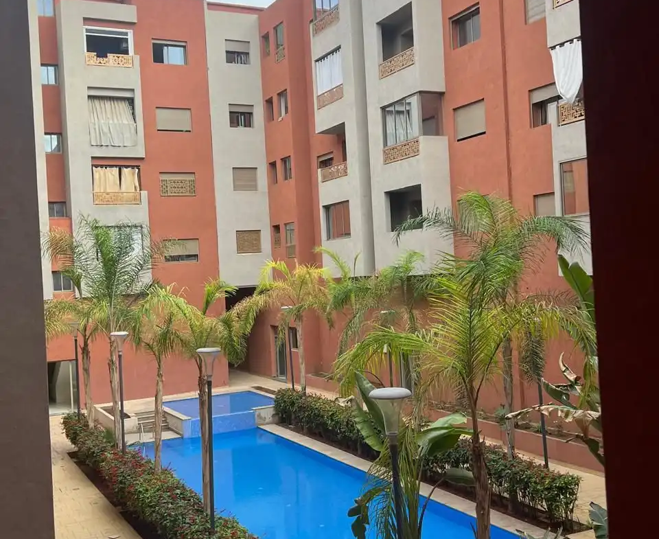 À LOUER LONGUE DURÉE – APPARTEMENT MEUBLÉ 2 CHAMBRES AVEC PISCINE – JNANE AWRAD – MARRAKECH